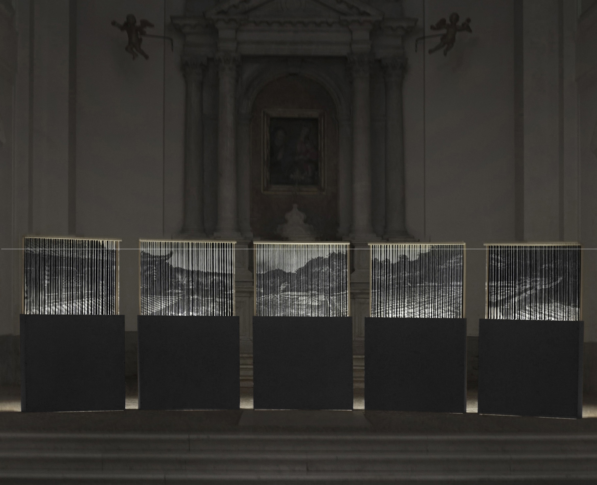 Immagine: Alessandro Cardinale, Equilibrium (2015), cotone + legno, 5000 x 180 x 14cm